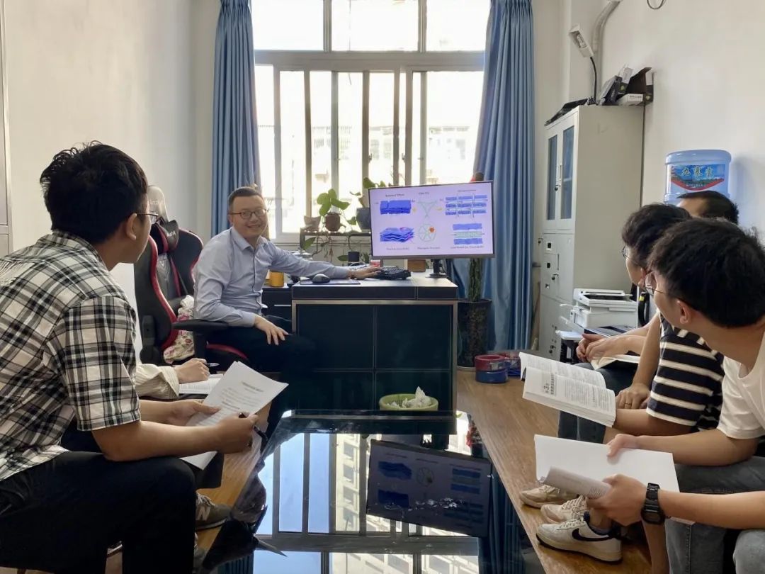 午饭过后,杨维清在办公室短暂休息,紧接着就继续扎进繁忙的科研工作中。14:00,有项目的合作方打来电话,商讨项目合作及规划下一步工作进度安排。商谈刚一结束,立马有学生敲门进来请求购置实验药品及书籍,接着又有同学带着开题报告来修改……敲门声不断响起,一个接一个的同学前来找杨老师进行相关事宜的汇报和商讨,办公室的门似乎就从未关上过,杨老师对同学们的耐心、对科研的认真也感染着每位同学。