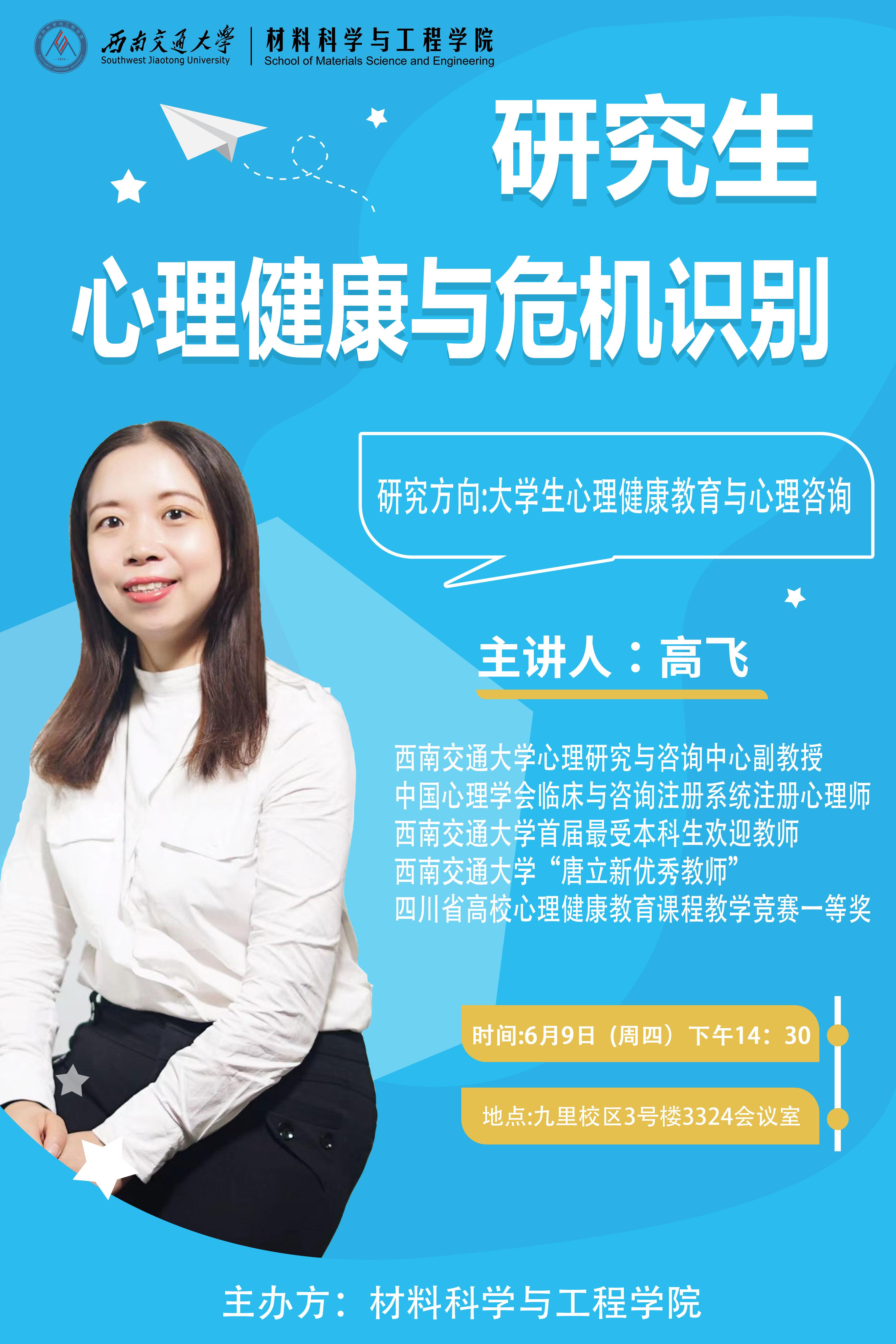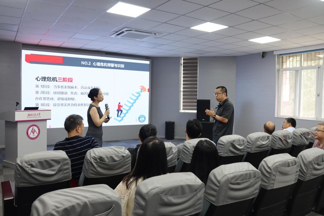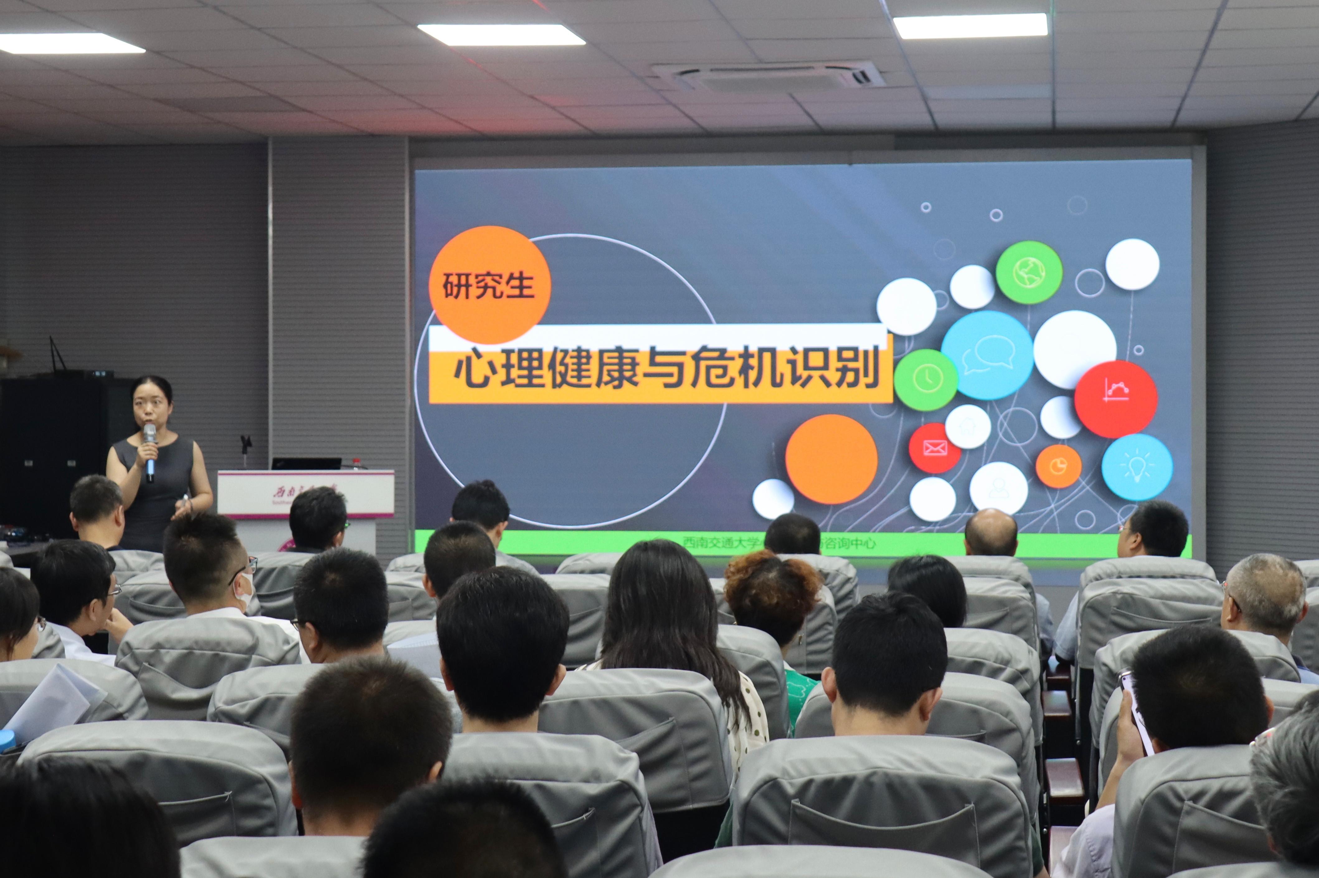 在九里校区J3324会议室举办研究生心理健康教育工作培训,学校心理研究与咨询中心高飞副教授应邀作“研究生心理健康与危机识别”专题培训。本次培训由学院党委书记陈勇主持,材料学院全体党政班子成员和在校教职工参加培训。