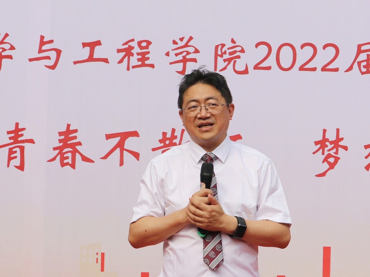 最后,由朱旻昊院长讲话。他饱含深情地为毕业生送上了祝福,嘱托同学们牢记自己是交大人,是材料学院一份子,希望毕业生有家国情怀,无论飞翔到哪里,无论走向何方,材料学院永远是大家的家,欢迎大家常回家看看。
