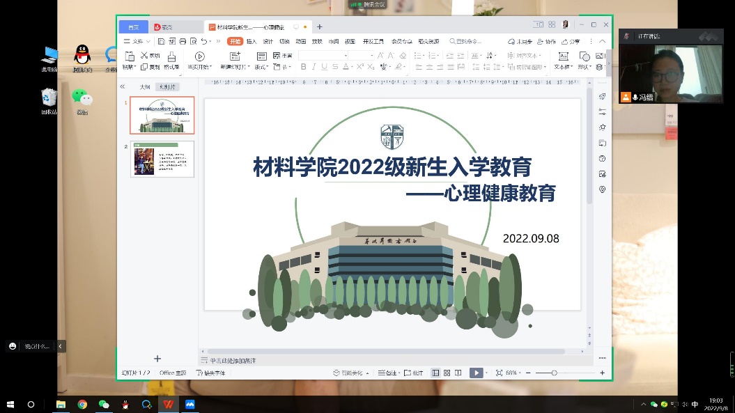 心理研究与咨询中心的冯缙副教授主讲,开展了主题为“新冠肺炎疫情下新生心理适应线上讲座”。受新冠肺炎疫情的影响,本次讲座采用线上的形式,在腾讯会议上进行,全体2022级研究生新生参会。