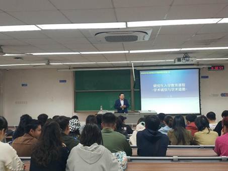 学术道德规范及学院的相关规章制度,告诫同学们不可触碰学术底线,并告诫同学们“立言先立德,立文先立人”,像珍惜生命一样珍惜自己的学术荣誉。他特别提到,谢和平院土在演讲中说:“社会可能世俗、浮躁,但学术不能世俗,教育不能浮躁,学校不能功利”,以此提醒我们,戒骄戒躁,心思纯粹地搞科研。
