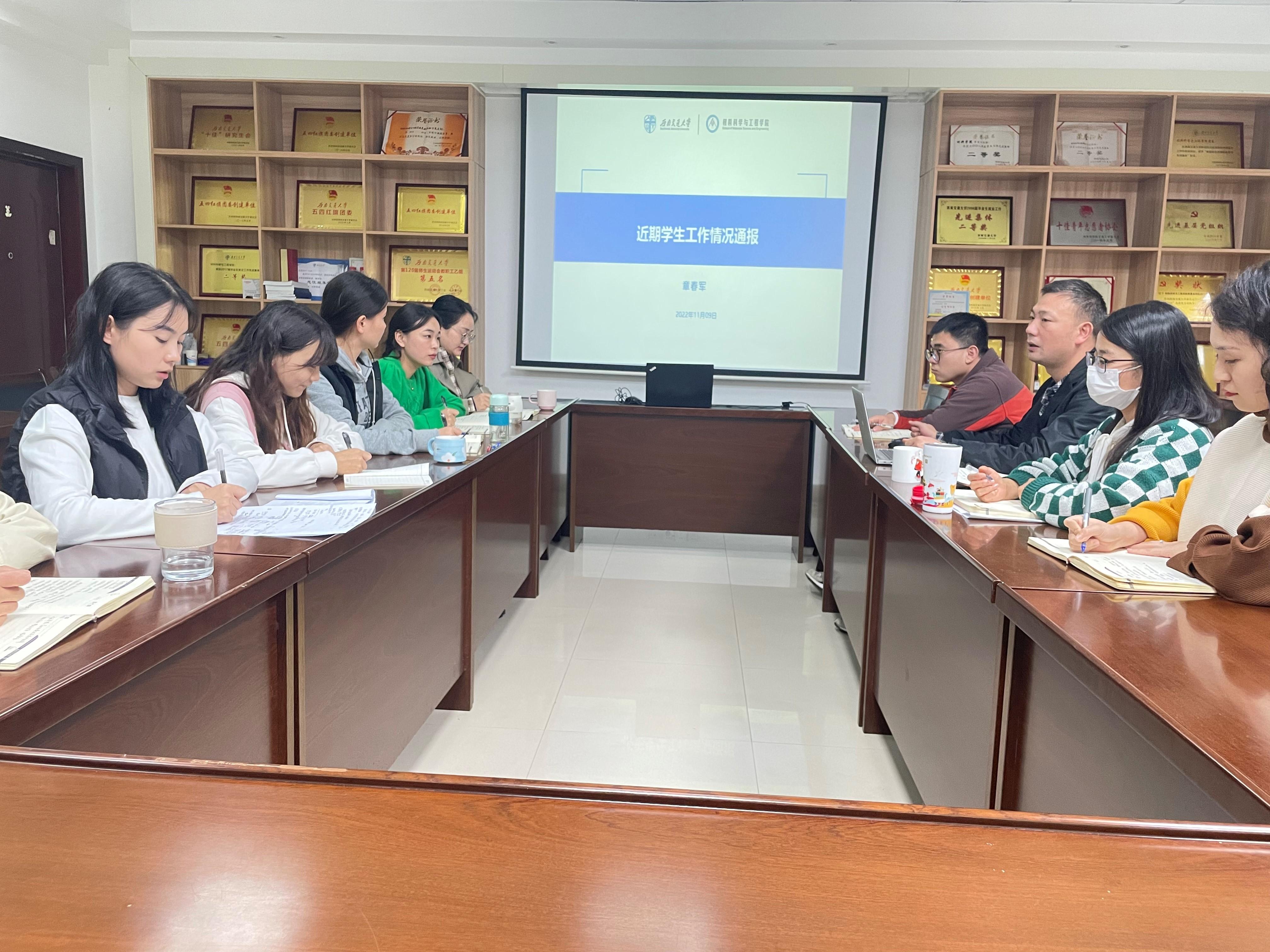 为提升学生工作实效,提高辅导员业务水平,全面加强辅导员队伍建设,2022年11月10日,材料学院在X2128进行辅导员工作专题培训,学院党委副书记章春军、学工组副组长王誉静和全体辅导员参加培训。
