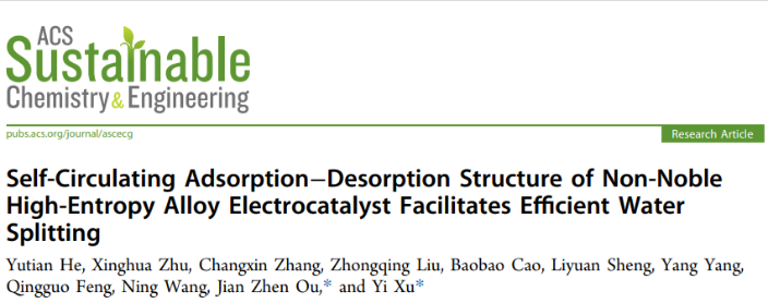 金属材料系徐轶团队围绕高熵合金的结构功能一体化,在水制氢领域取得重要研究进展。在由国际权威科研机构美国化学学会(American Chemical Society,ACS)创办的工程技术领域权威期刊ACS Sustainable Chemistry&Engineering (Top期刊,IF=9.224,一区)发表题为“Self-Circulating Adsorption-Desorption Structure of Non-Noble High-Entropy Alloy Electrocatalyst Facilitates Efficient Water Splitting”,该论文的第一作者为2021级硕士研究生何雨田,2021级博士研究生朱星桦,论文通讯作者为51黑料网
