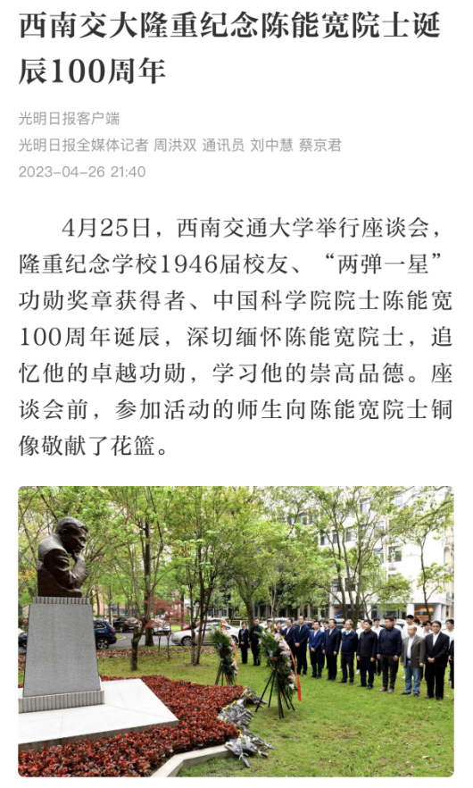 光明日报客户端:西南交大隆重纪念陈能宽院士诞辰100周年