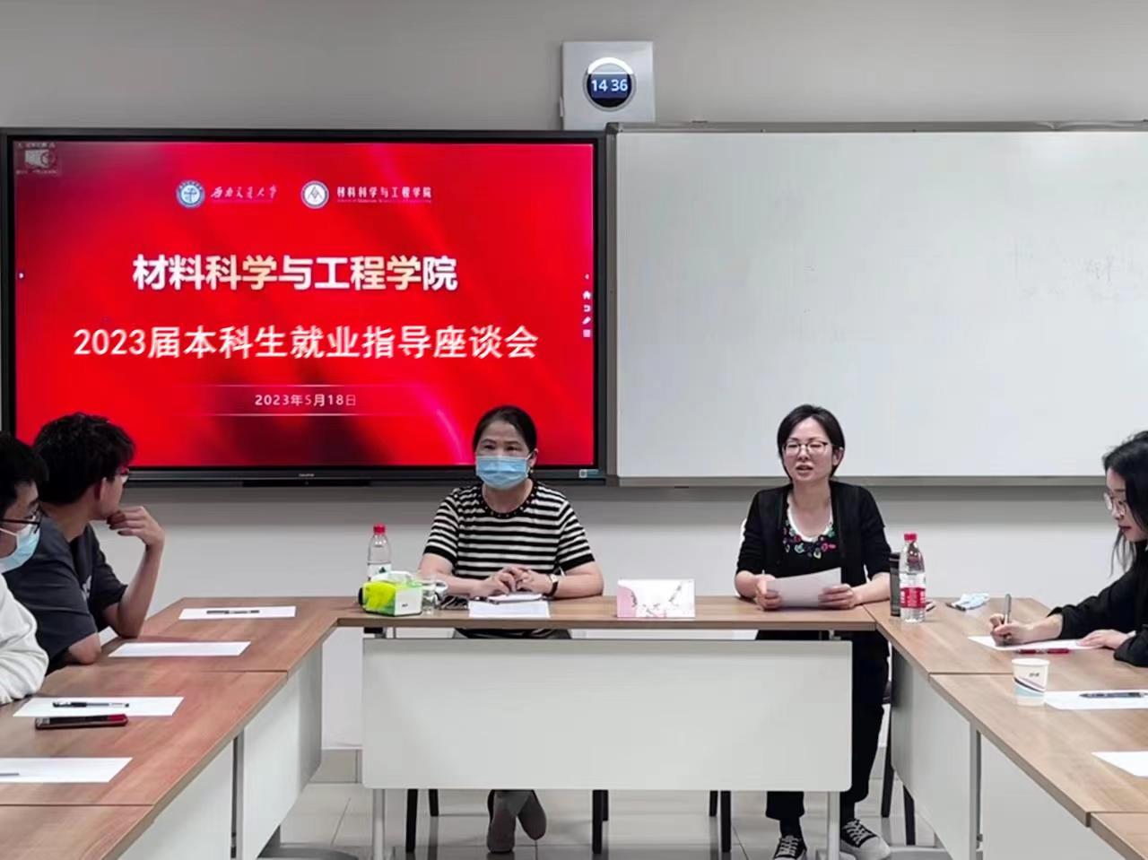 为进一步做好2023届本科毕业生就业工作,帮助同学们解决就业方面存在的实际困难,5月18日下午,材料学院在犀浦校区召开2023届部分毕业生就业指导座谈会,实施精准就业帮扶。学校招生就业处副处长黄春蓉,学院党委副书记熊钰,辅导员邓文婷及2023届部分本科生参会。座谈会由熊钰主持。