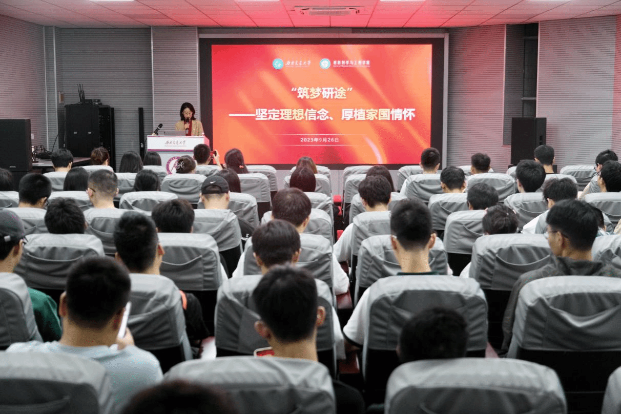 为深入学习贯彻习近平总书记关于教育强国、研究生教育的重要讲话精神,9月26日晚材料学院特邀学校“红路”理论学讲团乔宇、钟蔓君、杨倩在九里校区3324会议室为2023级研究生新生讲“第一堂思政课”。活动由辅导员邓文婷主持。