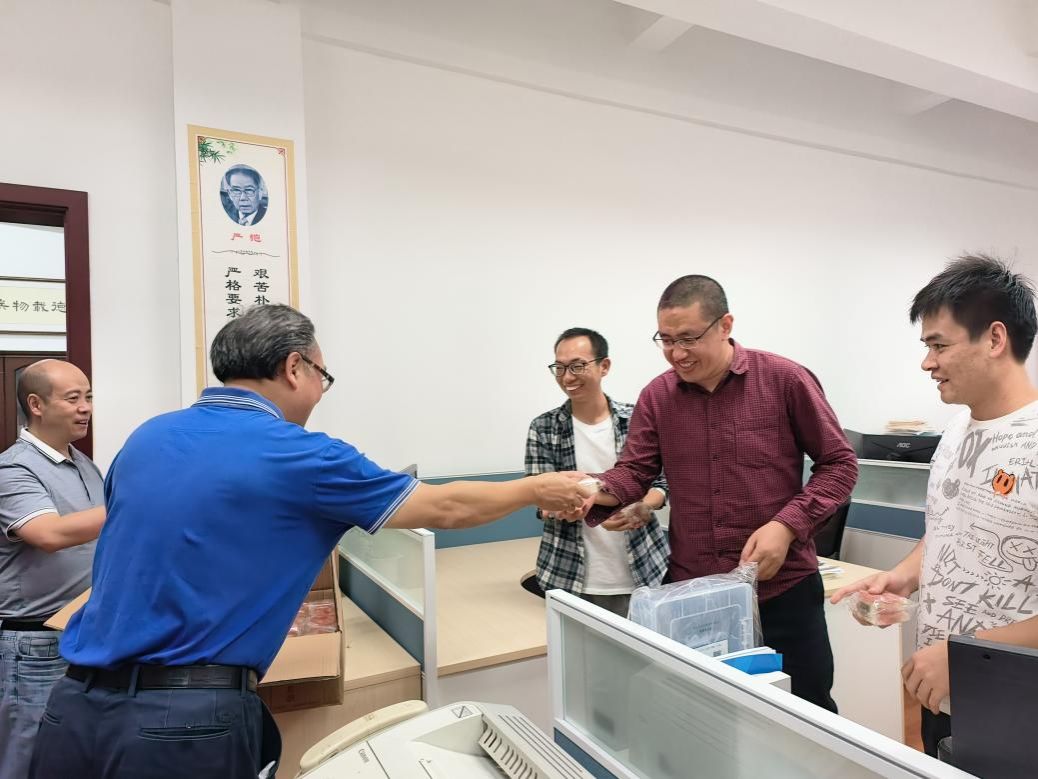 无云世界秋三五,共看蟾盘上海涯。中秋佳节来临之际,材料学院院长陈辉、常务副院长李涛、党委副书记熊钰、副院长李琦、副院长刘艳及全体研究生辅导员走访慰问研究生,为学生发放中秋月饼,送去节日问候与关怀。