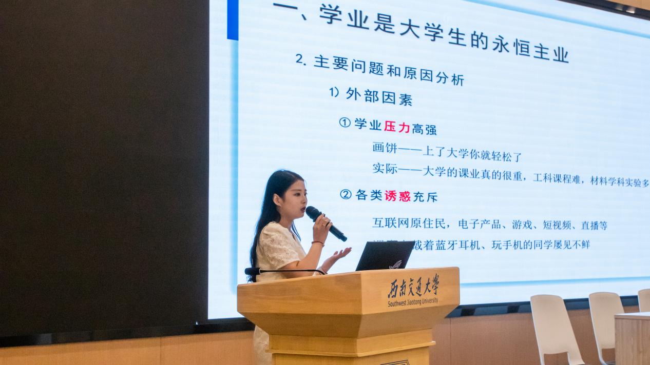 优秀学科成果及科技奖项,强调科教产深度融合促进成果转化,同时介绍了材料学科的支柱方向和新兴方向。他总结并分享到,家长要关注学生身心健康,孩子要在学校养成良好习惯,在西南交大得到满满的收获。