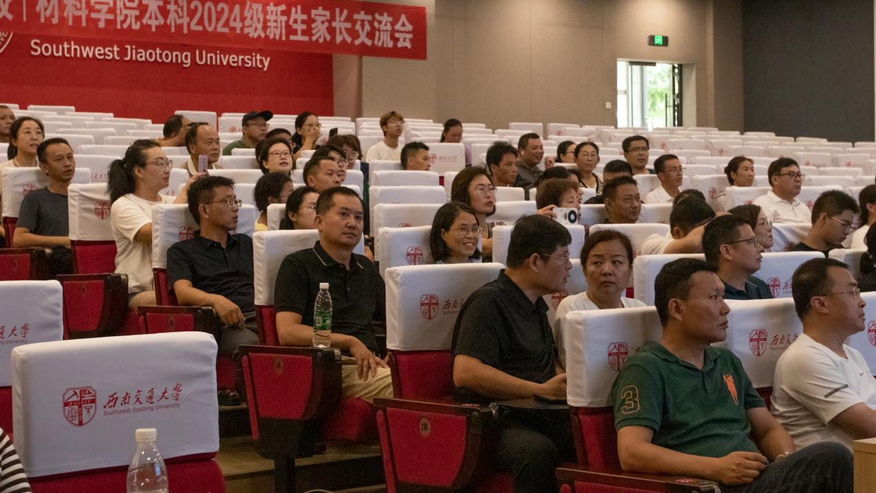 初秋的风吹散了些许炎热的暑气,同时也揭开了大学的序章。为加强学校与2024级新生家长之间的沟通交流,促进家校合作,为新生尽快适应大学生活提供支持与帮助,2024年8月30日上午,材料学院在犀浦校区图书馆一号报告厅召开本科2024级新生家长交流会。材料学院院长陈辉、党委书记张占军、党委副书记熊钰、副院长蒋小松、院长助理刘庆利、学生工作组副组长王誉静以及各年级辅导员和新生家长近百人参加。会议由2024级辅导员罗丹主持。