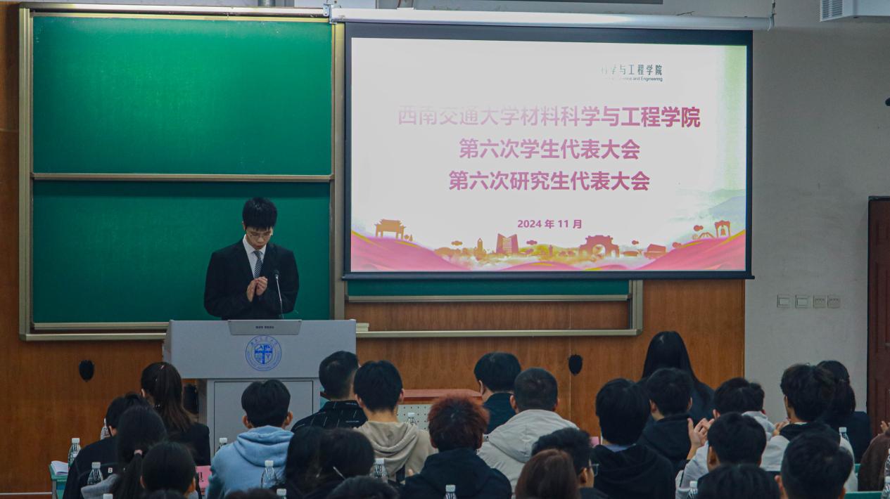 第六次学生代表大会、第六次研究生代表大会在全体代表的共同努力下,已顺利落下帷幕。本次大会高举习近平新时代中国特色社会主义思想伟大旗帜,深入学习贯彻党的二十届三中全会精神和全国教育大会精神,激励材料学子以信仰筑牢初心、以理论强化思想、以实干推动发展,团结引领广大青年大学生以青春热血之我、青春奋进之我、青春奉献之我,做“有理想、敢担当、能吃苦、肯奋斗”的新时代好青年,在推进强国建设、民族复兴伟业中展现青春作为、彰显青春风采、贡献青春力量,奋力书写为中国式现代化挺膺担当的青春篇章。