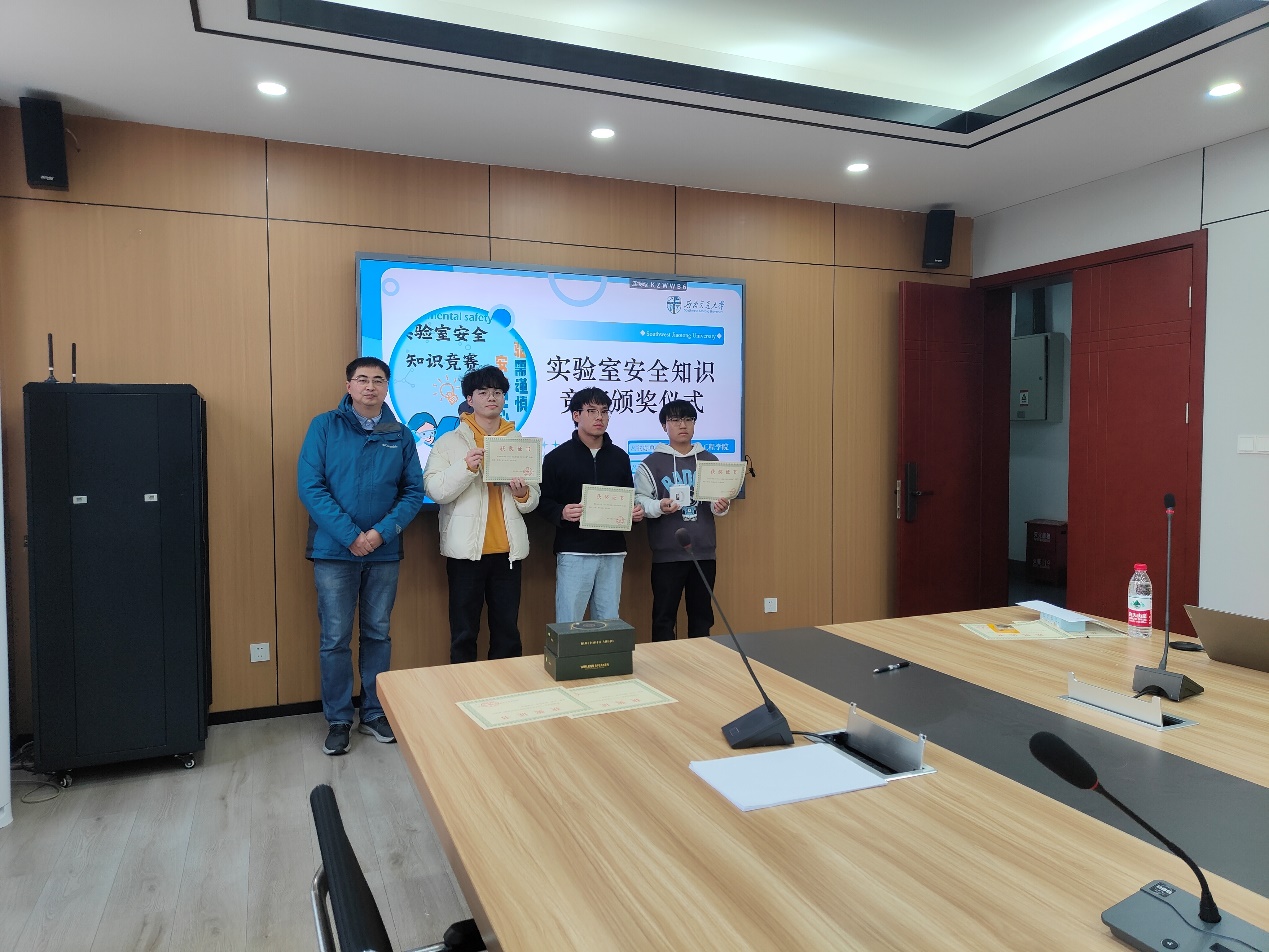 随后,进入颁奖环节。材料学院蒋小松副院长、金材系主任徐轶教授和曾迎老师为获奖同学颁奖。蒋小松对获奖同学表示祝贺,并鼓励大家在今后的学习和实验中,继续严格遵守安全规范,确保实验安全。