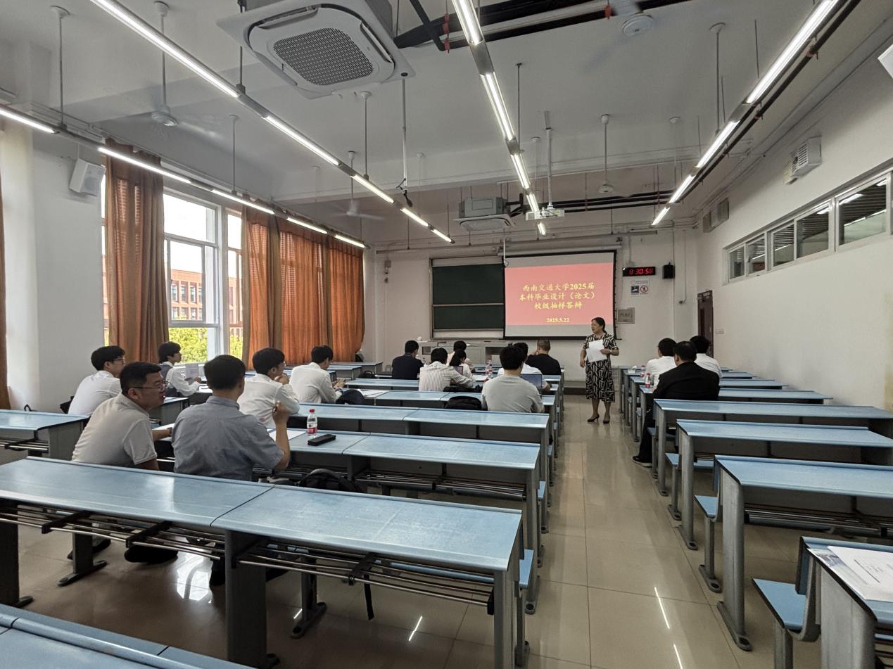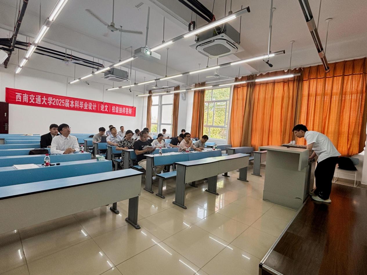 2025届本科毕业设计(论文)校级抽样答辩在犀浦2号楼拉开帷幕。计算机与人工智能学院杨燕教授担任校级督导组成员参与答辩;陈俊英教授担任答辩委员会主席,张松、杨建、黄银、孟云飞四位副系主任担任答辩委员,马飞担任秘书,抽样答辩学生的毕设指导教师、学院党委书记沈哲、副院长蒋小松全程参与答辩。