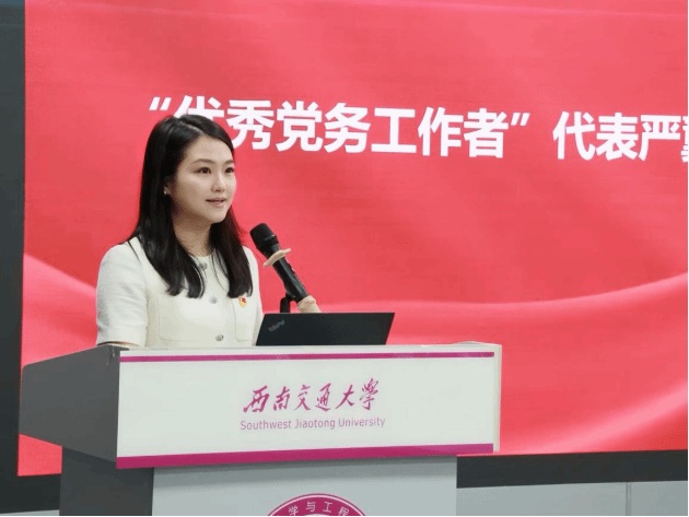 学院专职组织员严翼飞作为“优秀党务工作者”代表发言,她结合自身工作经历,分享了在党建工作和日常实践中的心得感悟,用朴实的语言传递着对党的忠诚与热爱。
