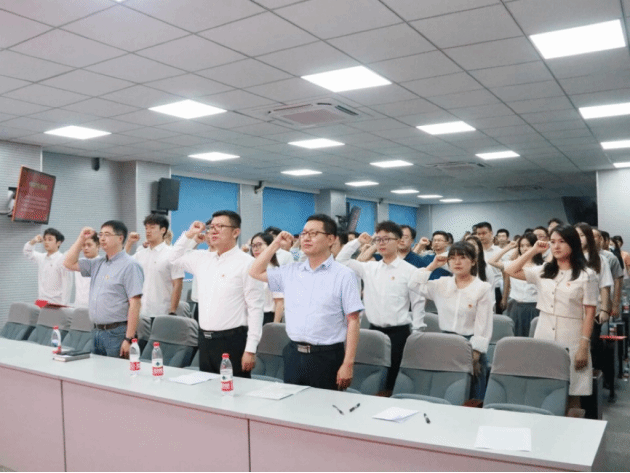 大会最后,熊钰带领全体党员重温入党誓词。全体党员庄严肃立,高举右拳,面向党旗再次庄严宣誓。铿锵有力的誓言响彻会场,进一步坚定了党员们的理想信念,强化了党员身份意识和使命担当。