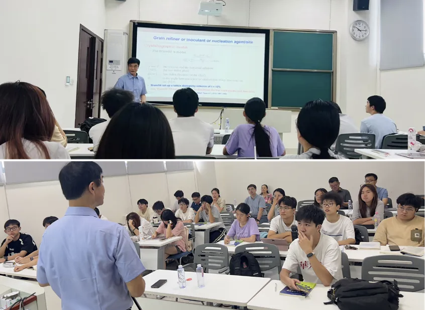 上午9:50-11:30,张明星教授在X30604为材料(茅班)2023-01班学生讲授专题课程,课程主题为“铸造金属晶粒细化理论进展”(Advance in Grain Refinement Theories for Cast Metals)。张教授结合自身研究,深入浅出地讲解了晶粒细化技术的最新理论及其工业应用。材料学院领导老师,以及承担材料科学与工程专业(中外合作办学)课程的授课老师到场观摩。课后,师生与张教授就课程内容展开深入交流,并就材料科学与工程专业中外教学与科研进行探讨,现场学术氛围浓厚。