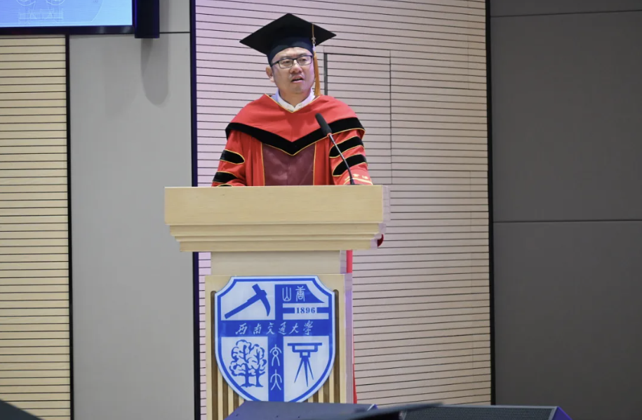游戏过后,毕业典礼进行到第八项议程,陈辉为毕业生们送上了诚挚的祝福,他带着毕业生们回忆了四年来在学院的学习生活,并向材子们送出四个字:一是“变”,要主动拥抱变化,“以变应变”,以开放心态迎接从“学习者”到“贡献者”的身份转型;二是“交”,重视交流协作,正视交叉创新,以多样包容的视角面对世界;三是“通”,须锤炼处世格局,通情达理,以包容胸襟化解挑战;四是“道”,不忘初心,将学术探索力转化为目标导向的攻坚力,在规则中创新突破。陈辉院长饱含深情与期待的四字箴言,收获了满堂学生持久热烈的掌声。