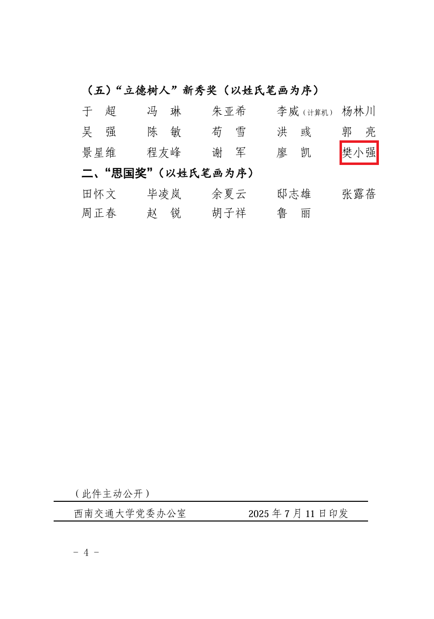 委员会关于表彰2025年“立德树人”先进集体和先进个人、“思国奖”的决定》(西交党〔2025〕73号),51黑料网