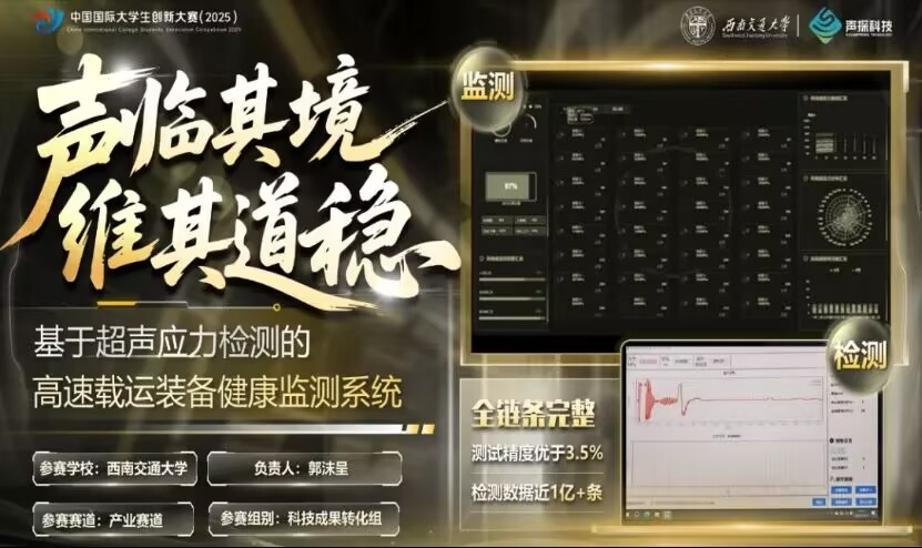 苟国庆教授师生团队的项目《声临其境,维其道稳,基于超声应力检测的高速载运装备健康监测系统》荣获金牌,再创佳绩!