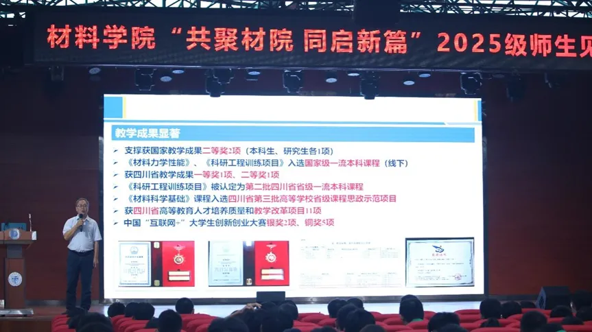 犀浦校区二食堂三楼会堂顺利举行。材料学院2025级全体本硕博新同学齐聚一堂,共同开启人生的崭新篇章。