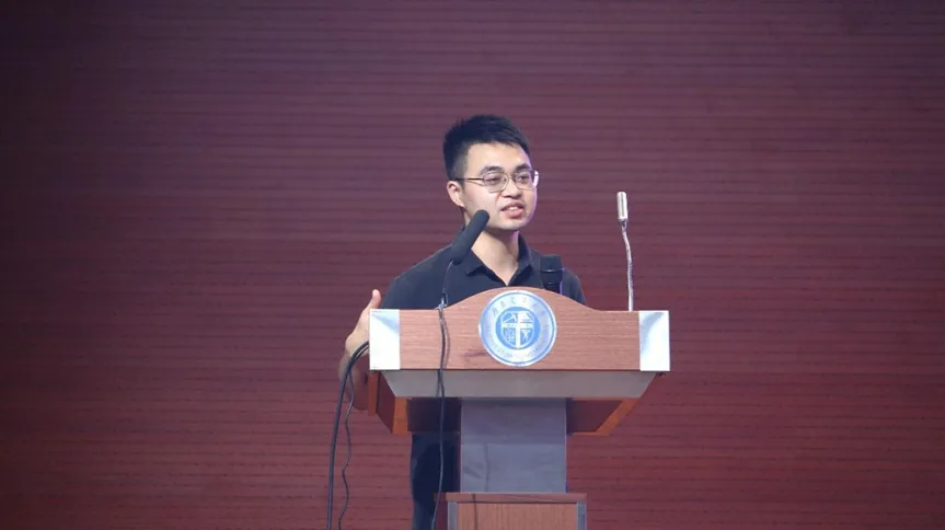 本科生导师代表代表舒锐分享成长经历,鼓励新生树立向上目标、保持自律精神。通过回顾十二年前自己作为新生入学交大的经历,从最初“读完大学找份工作”的朴素目标,到保研读博、出国交流、回归母校任教的成长历程,强调在人生阶段不断变化的过程中,始终保持“向上”的目标导向至关重要。他指出,实现目标需要自律的支撑,建议新生合理平衡学习与生活,做到张弛有度。