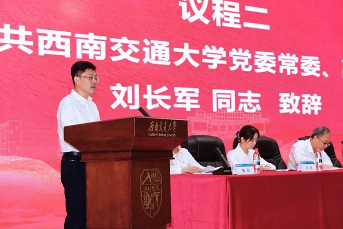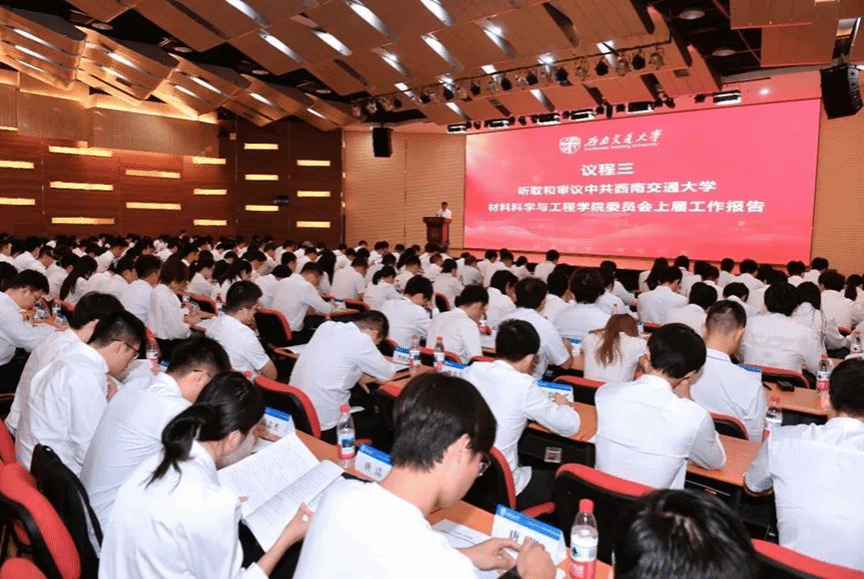 大会的主题是:高举习近平新时代中国特色社会主义思想伟大旗帜,深入贯彻落实党的二十大和二十届二中、三中全会精神,深入学习贯彻习近平总书记关于教育的重要论述,坚持“以学生为中心、以教师为主体”的办学理念,围绕学校一流大学建设目标,全面加强对轨道交通急需的基础支撑、关键战略和前沿新材料及其关键技术研究攻关,团结带领全院师生员工,紧扣立德树人根本任务,以高质量党建引领学院各项事业高质量发展,为打造世界高水平交通材料学科而团结奋斗。