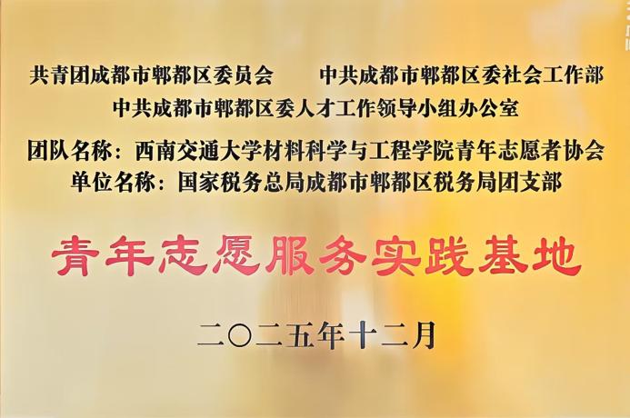 青年志愿者协会与国家税务总局成都市郫都区税务局团支部共同揭牌“青年志愿服务实践基地”。