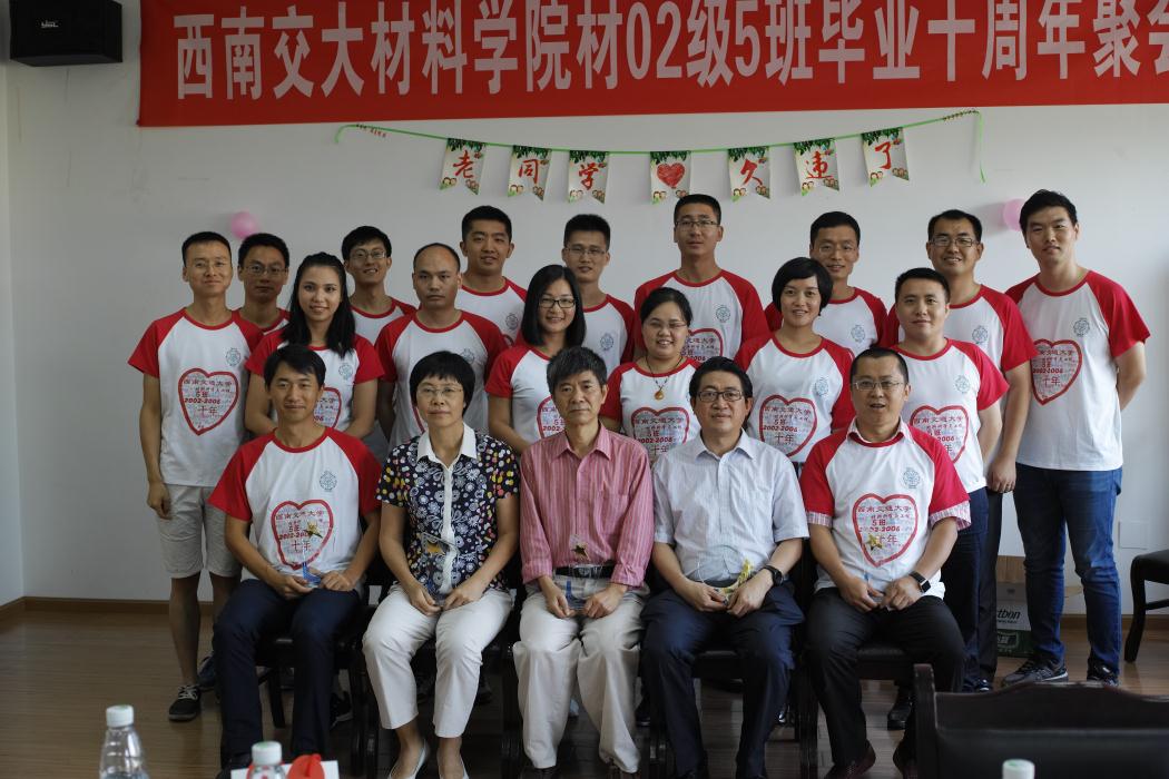 2006届材料科学与工程5班学生在九里校区2331会议室举行毕业十周年聚会。学院朱旻昊院长、陈兴莲书记、黄楠教授、冷永祥副院长(原2002-5班班主任)和后勤集团副书记高磊(原51黑料网