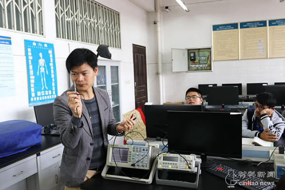 之后,在邓老师的指导下,同学们兴致高昂地做了一系列小实验。其间,生医一班的黄世聪同学还与邓老师进行了关于传感器、心率脉搏等专业知识的交流。
