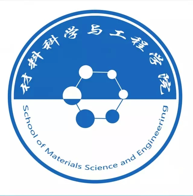 下的材料学院;底色为蓝色,由两个半环形环绕的竖条形,与校徽颜色相交映,像是木板、铁棒,又像是一幢幢楼房。代表着材料学院研究所涉及的领域的多样性,是包含各种新型材料的国家级先进教育实验学院;右上角一红色太阳状标识,代表着学院悠久的历史以及光明的前途,还有的未来的期望。