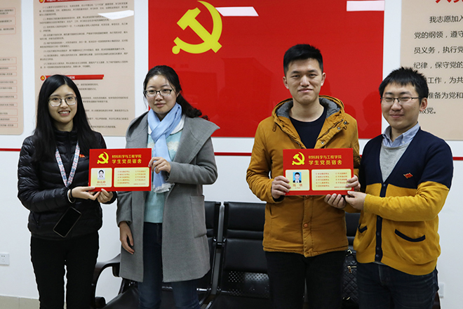 为亮明党员身份,发挥先锋模范作用,材料学院本科生第二党支部于 2017年12月13日晚七点半在2127B举行了为“学生党员宿舍”授牌活动。到场嘉宾有本科生第一党支部书记邱鑫玥老师、第二党支部书记卿宴伶老师、第三党支部书记魏久林老师、党建中心指导老师胡博老师以及17级辅导员杨武老师。