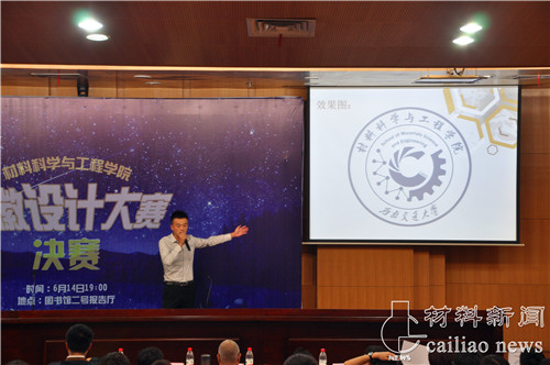 主办,院学生工作组和团委承办的材料学院院徽设计大赛决赛暨科技文化月闭幕式在图书馆2号报告厅举行,出席本次晚会的有材料学院党委书记陈兴莲、党委副书记戈满寿、艺术与传播学院艺术设计系系主任陈立民老师,艺传学院李馨、候兵老师,以及材料学院崔国栋老师。