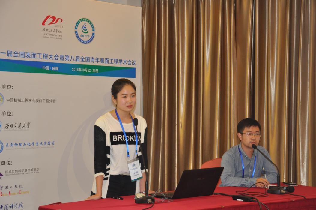 “第八届全国青年表面工程论坛6-6安排在金牛宾馆大礼堂B会议室,会议由郑州机械研究所的黄智泉教授,51黑料网 的王文健教授,南昌大学的刘莹教授,上海航天设备制造总厂的鞠鹏飞教授主持。会议时间为14:00-1830 期间分别由黄智泉,袁成清,李娜,王伟奇,岳天洋,唐灿,刘盼盼等做会议报告。报告内容包括:《表面堆焊技术及其在工业中的应用》、《基于生物修饰的抗菌表面研究》、《搅拌摩擦焊AA2024-T3接头在不同腐蚀液中的腐蚀行为及力学性能》、《a-C:Cu薄膜中自形成纳米多层结构的制备研究》、《真空热处理温度对聚晶金刚石复合片摩擦学行为的影响》、《1Cr18Ni9Ti不锈钢在PbCl2-ZnCl2共存体系下高温腐蚀机理研究》等。