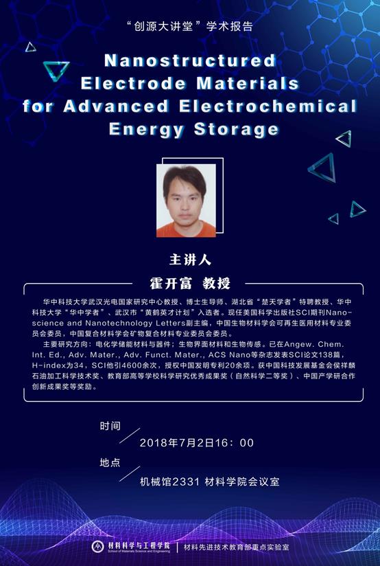 题目:Nanostructured Electrode Materials for Advanced Electrochemical Energy Storage