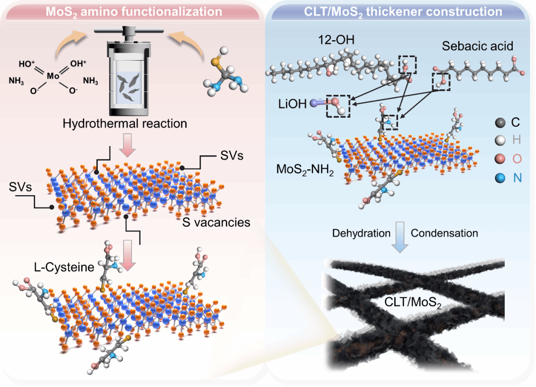 图一半胱氨酸接枝在MoS2硫空位及CLT/MoS2稠化剂的合成原理
