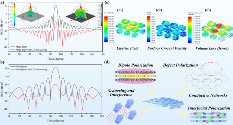 图图3 CuHBT复合涂层RCS及结构特性电磁仿真和吸波机理图