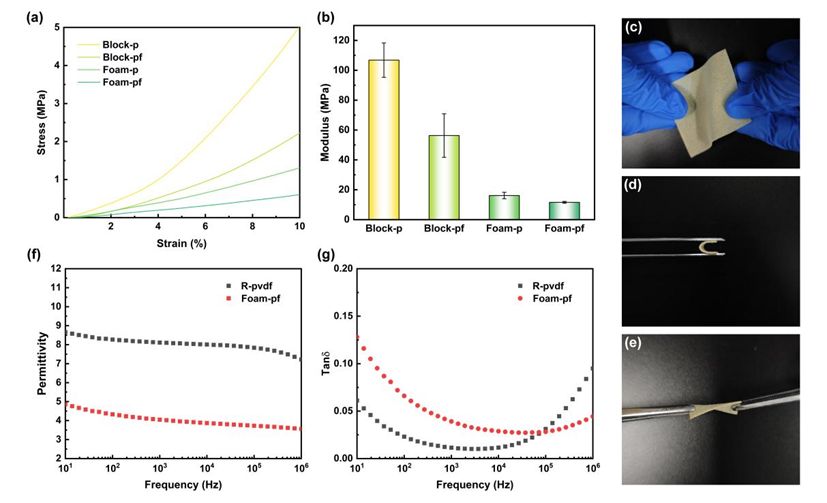 图1. 双级孔PVDF机械性能与介电特性表征测试结果。
