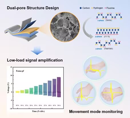 柔性压电材料在可穿戴电子、健康监测及软体机器人等领域潜力巨大。有机压电聚合物(如PVDF及其共聚物)因其良好柔韧性备受关注,但普遍存在压电系数偏低、灵敏度不足的瓶颈。同时,为提升传感性能引入的多孔结构往往显著削弱材料的机械强度和耐久性。因此,开发兼具高灵敏度压电输出与优异机械韧性的柔性材料,尤其是解决多孔化带来的力学性能劣化问题,成为该领域亟需突破的关键挑战。