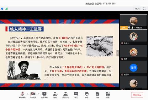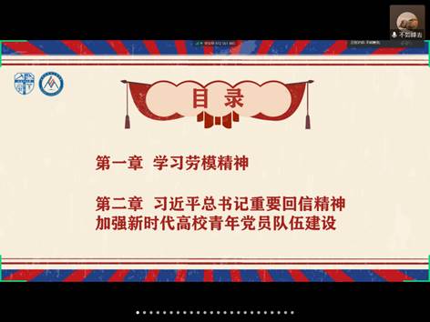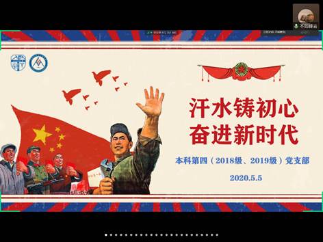 材料学院本科生第四(2018级、2019级)党支部为弘扬劳动精神,赞美劳动人民,于5月5日15:00通过腾讯会议平台开展了“汗水铸初心,奋进新时代”主题党日活动,支部党员、预备党员和入党积极分子共计99人参与了此次主题党日活动。本次活动主讲人为2018级入党积极分子王国强同志。