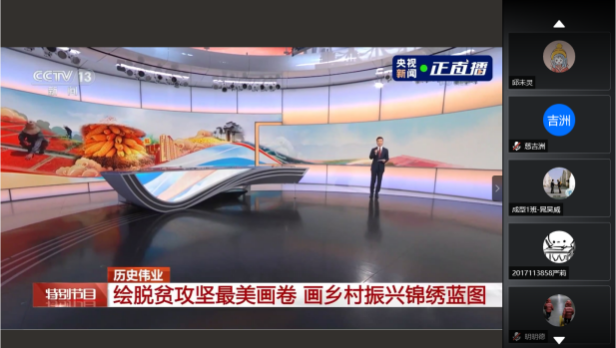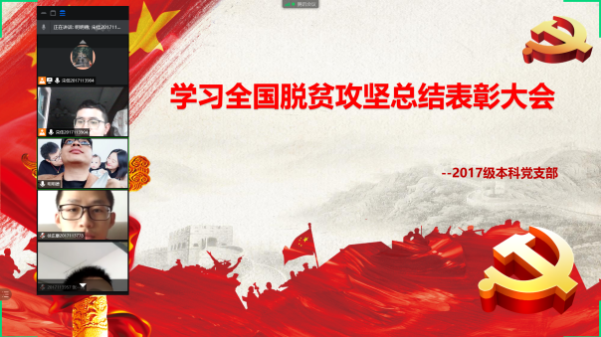 2021年2月25日上午9:00,本科生第三(2017级党支部)在线上开展了脱贫攻坚总结表彰大会直播学习,认真观看了全国脱贫攻坚总结表彰大会特别报道之历史伟业,习近平总书记向全国脱贫攻坚楷模荣誉称号获得者颁奖并发表了重要讲话,各党员同志并据此进行了交流。