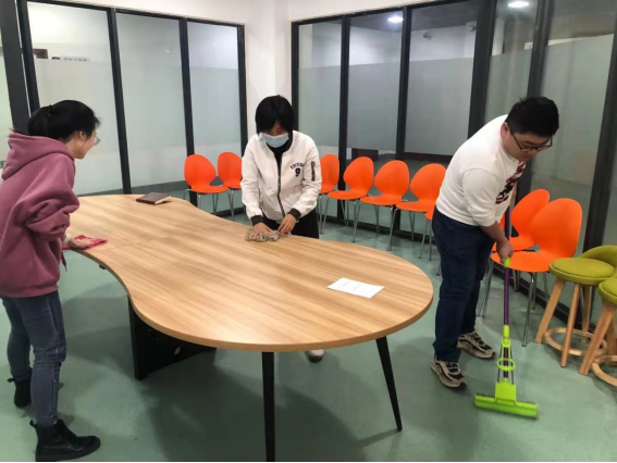 公益活动中,党员们不怕脏、不怕苦、不怕累,勇挑重担的良好精神风貌。大家热情高涨,以劳动为荣,乐在其中。有的清扫走廊中尘土与碎屑,有的拿起拖把将会议室与走廊拖干净,有的拿起抹布清理会议室的公共桌椅,环境焕然一新。