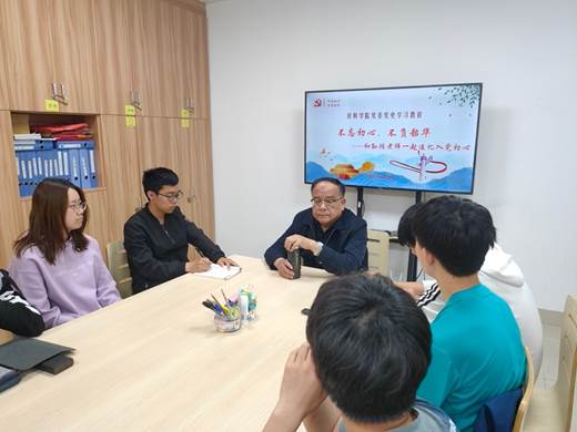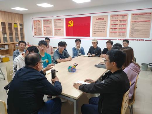 2021年4月28日晚上7点,由材料学院党委主办、材料学院大学生党建中心承办的党史学习教育之“不忘初心 不负韶华”主题座谈会在犀浦校区X2127B会议室举行。本次座谈会邀请到材料学院退休教职工孙鸿老师和青年党员、入党积极分子交流,辅导员老师郑纪伟、熊苏雅及本科生各党支部学生代表等15人参加座谈会。