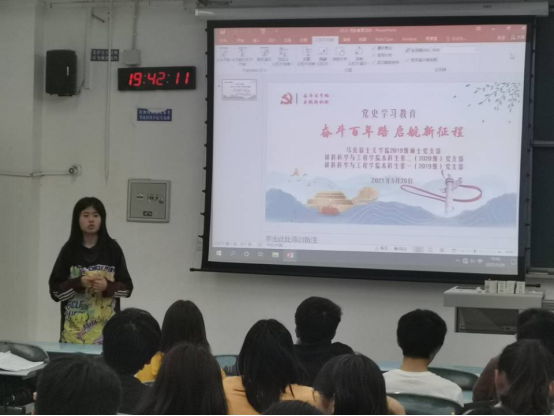 2021年5月26日晚7点,材料学院本科生第一、第二党支部邀请马克思主义学院2019级硕士党支部的同志开展党史学习教育专题讲座。本次活动由本科生第一党支部书记代宇欣主持。