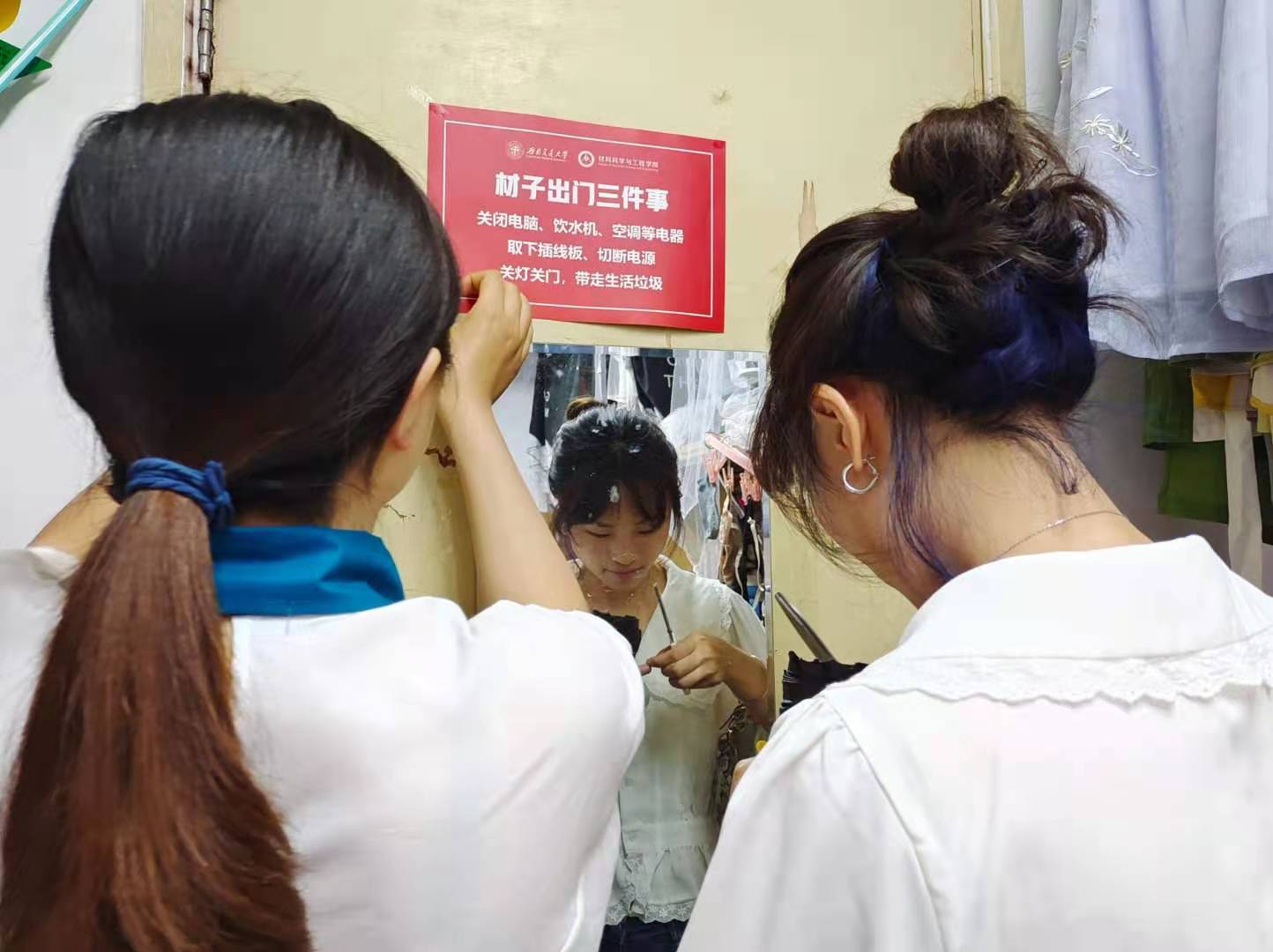 为贯彻落实习近平总书记在党史学习教育动员大会上的讲话精神,将党史学习教育与实践相结合,为师生办好事,进一步加强学生宿舍园区安全,营造较好的生活住宿环境。2021年6月17日上午11:00,研究生第十党支部进入宿舍园区进行突击安全检查,并进行宿舍安全提示标语的粘贴。