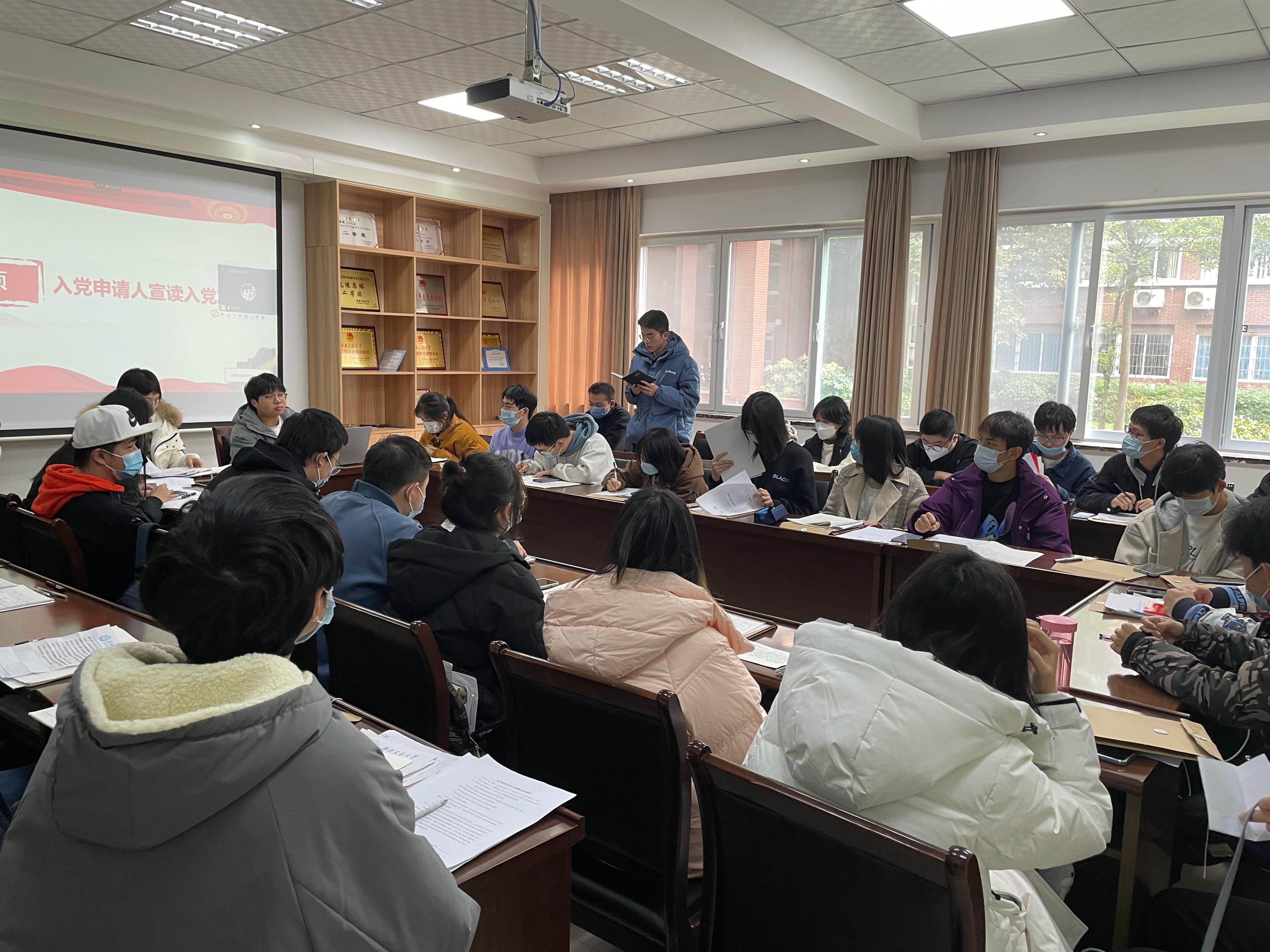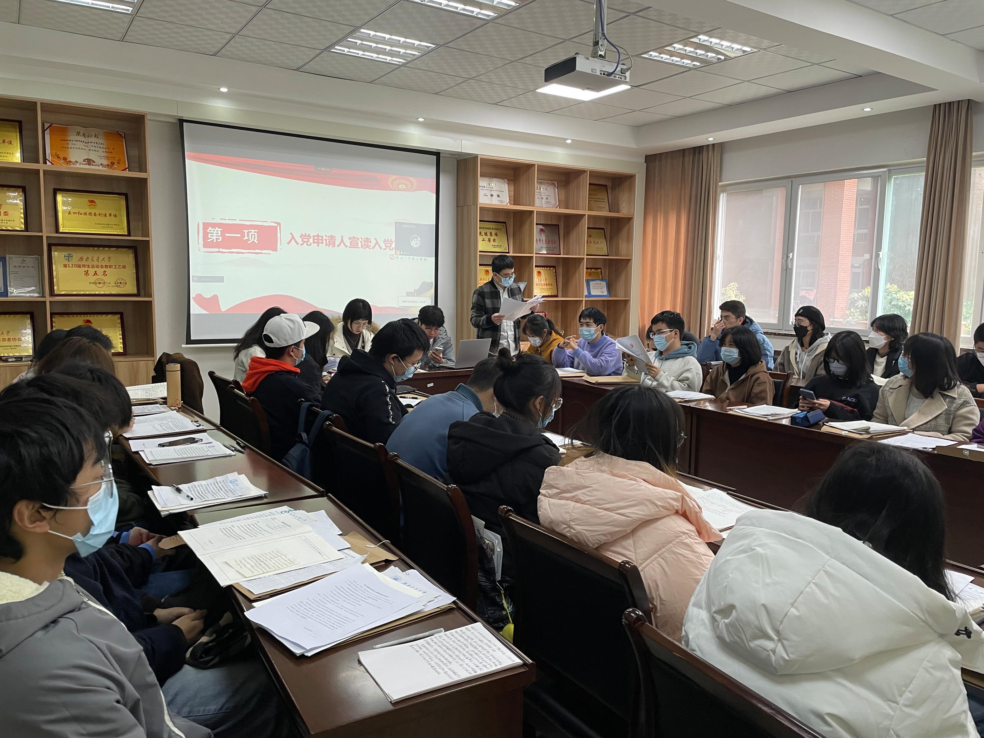 2021年11月20日,材料学院本科生第一(2019级)党支部在犀浦校区X2128召开党员大会,讨论接收赵博洋、陈一凡等41位发展对象为中共预备党员事宜。按照党员发展工作流程要求,经大会讨论表决,同意接收赵博洋、陈一凡等41位同志为中共预备党员。