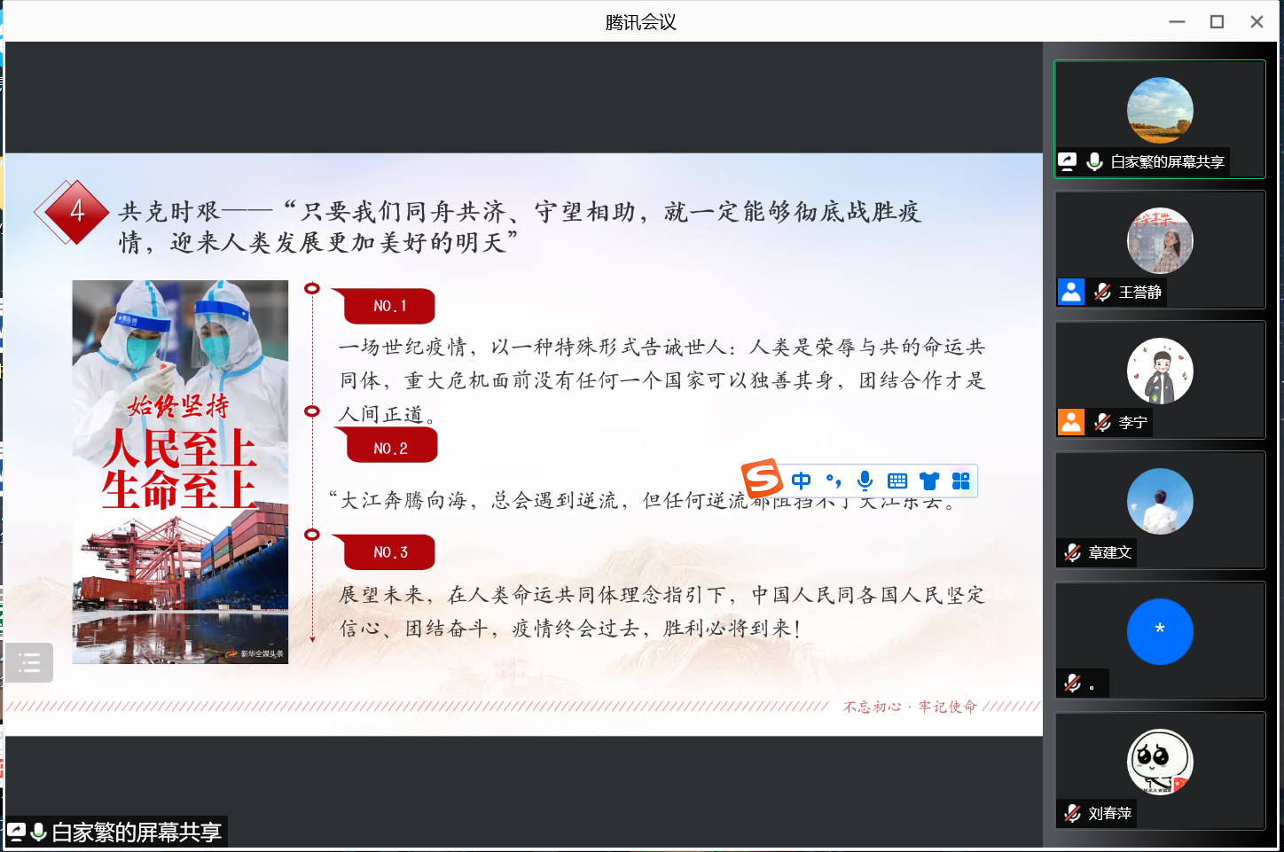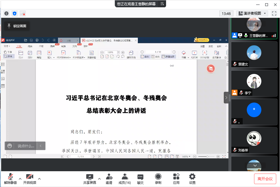 随后,在白家繁同志的领学下,全体与会人员一起学习了《“始终坚持人民至上、生命至上”——习近平总书记指挥打好统筹疫情防控和经济社会发展之战述评》,在面对世纪疫情的跌宕反复的形势下,习近平总书记亲自指挥、亲自部署,以科学之策应对非常之难,以办好发展和安全两件大事的非凡实践,团结带领亿万人民打好统筹疫情防控和经济社会发展之战。在疫情来势汹汹的危急时刻,以习近平同志为核心的党中央发出“人民至上、生命至上”的最强音。