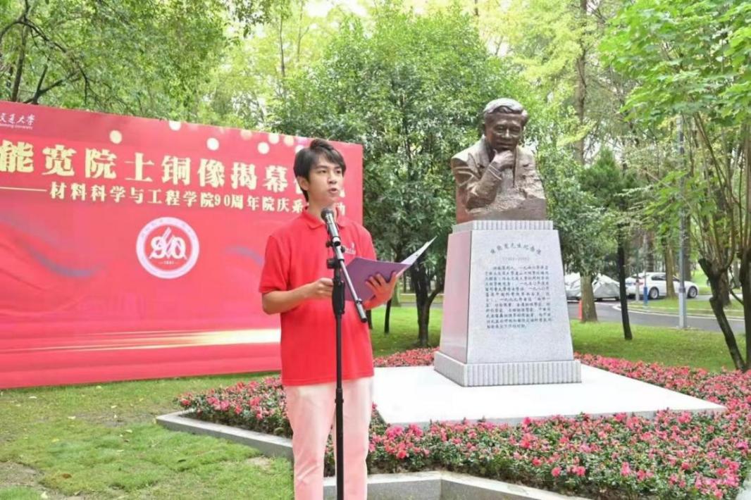 张佳豪同志代表材料学院向全校和社会展示了材料学院杰出校友陈能宽的“许身卫国最难忘”的爱国情愫和淡泊名利的作风。彰显了材料学院对“科学家精神”育人的高度重视。