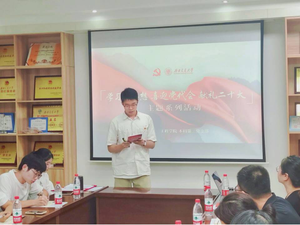 为深入学习习近平新时代中国特色社会主义思想和党的十九届六中全会精神,强化党支部全体成员理论武装,以饱满的精神和青春的风貌迎接学校第十五次党代会和中国共产党第二十次全国代表大会胜利召开,2022年7月5日晚,材料学院本科生第二党支部在X2128组织开展了“学习新思想,喜迎党代会,献礼二十大”主题学习启动仪式暨系列活动第1期学习会。