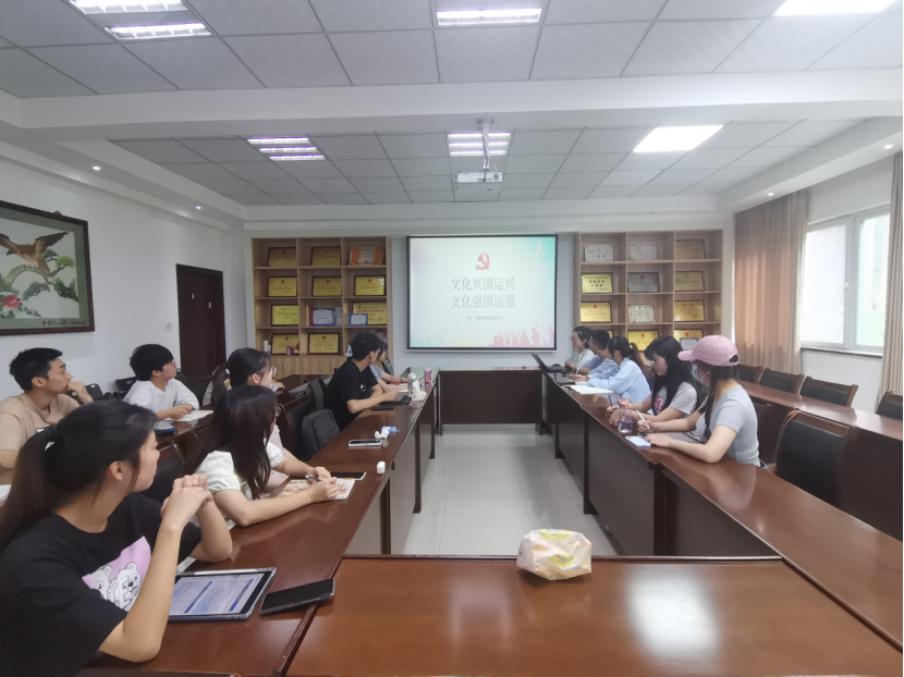 会议第二项,党支部书记许欢为与会同志讲了一堂题为“文化兴国运兴,文化强国运强”的党课,她强调“四个自信”中,文化自信是更基础、更广泛、更深厚的自信,是更基本、更深沉、更持久的力量,希望广大青年要坚定文化自信,大力推动中国文化走出去,为我们强国自信提供更基本更深沉更持久的力量。