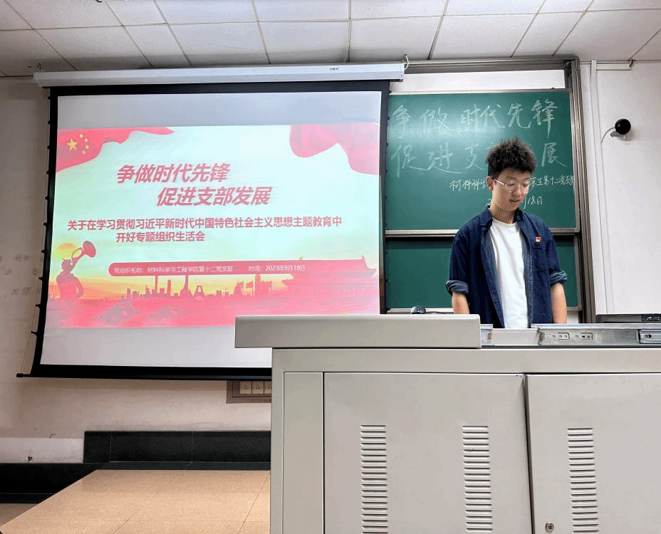 为深入学习贯彻习近平新时代中国特色社会主义思想,深入学习领会习近平总书记关于主题教育的重要指示精神,把握学思想、强党性、重实践、建新功总要求。2023年9月18日,材料学院研究生第十二党支部在J4320开展了专题组织生活会暨“争做时代先锋,促进支部发展”主题教育。