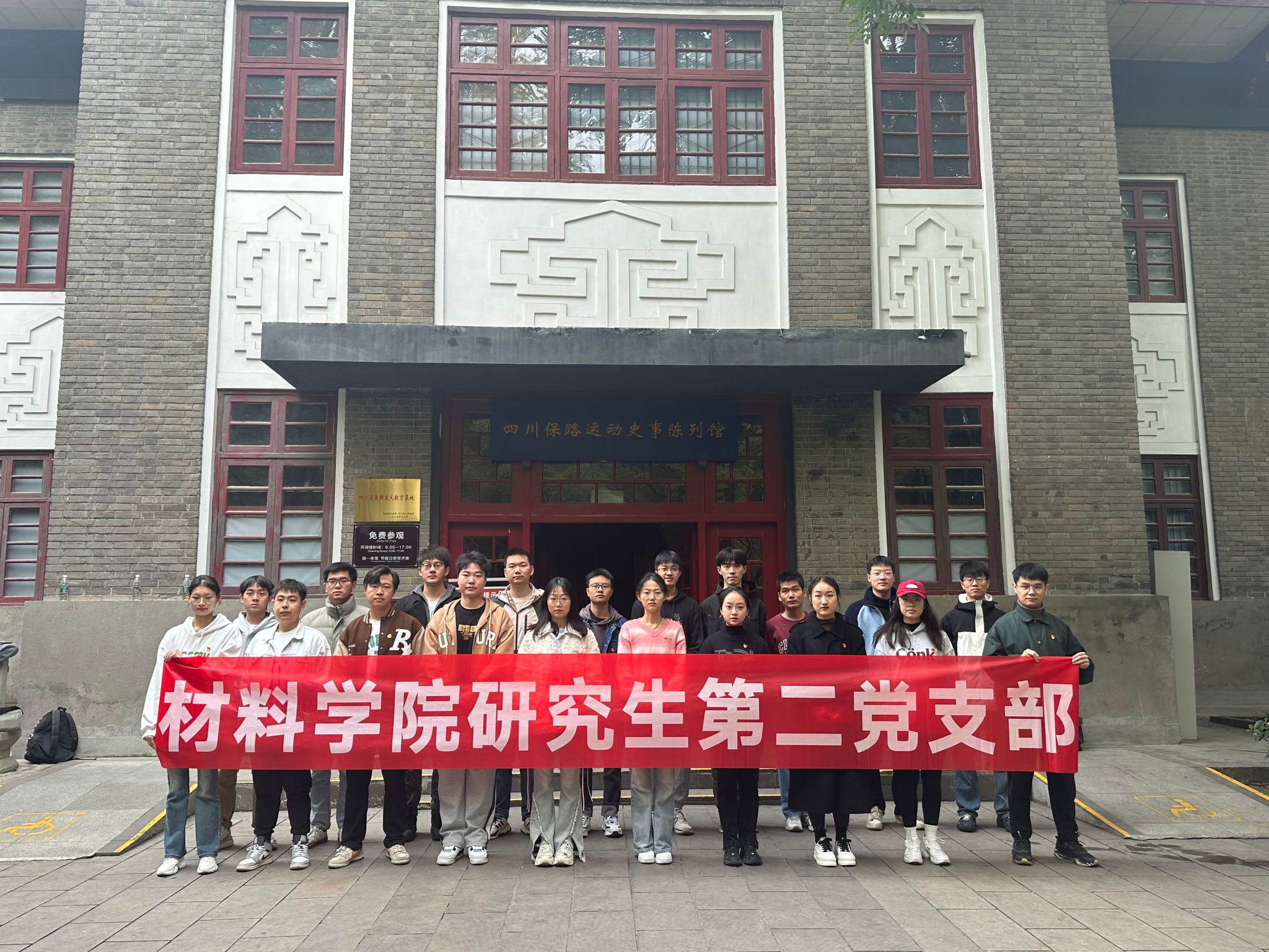 为学习贯彻习近平总书记关于党史学习教育的重要论述,认真贯彻学史明理、学史增信、学史崇德、学史力行的要求,了解保路运动史实,进一步强化党员干部理想信念,让青年学子更加了解党的光辉历史,坚定共产主义信仰,材料学院研究生第二党支部于2023年11月23日前往四川保路运动史事陈列馆开展“永远跟党走,建功新时代”主题教育实践活动。党支部指导老师徐励漪和支部全体学生党员参加。